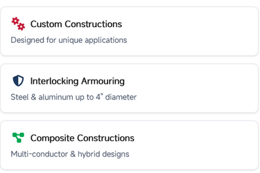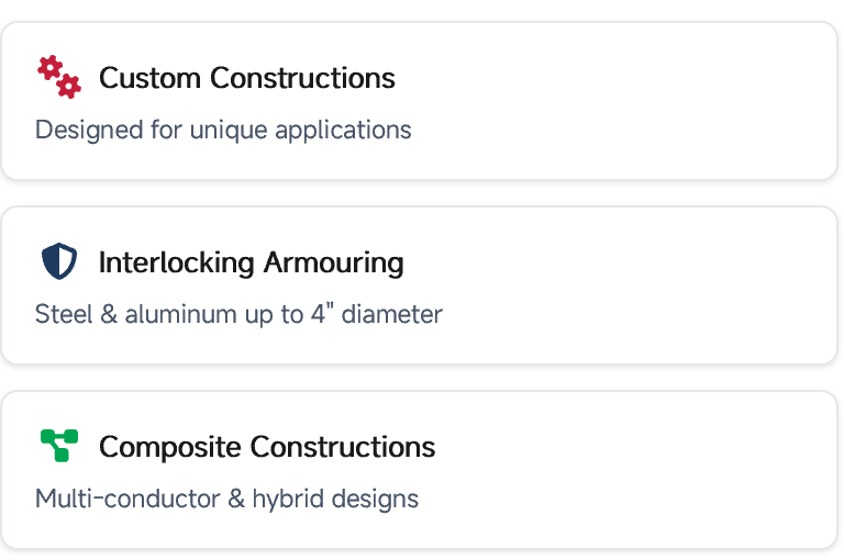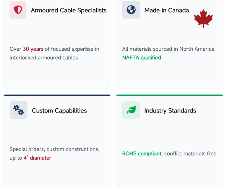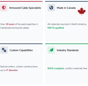 As a specialty armoured cable manufacturer, Northern Cables is recognized for its expertise in producing copper and aluminum cable constructions that meet CSA and UL standards for North America, and for its ability to supply both standard and custom cable designs on demand.
