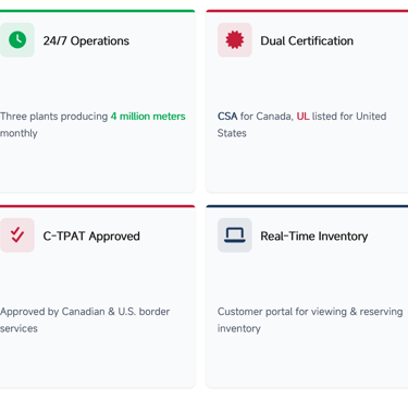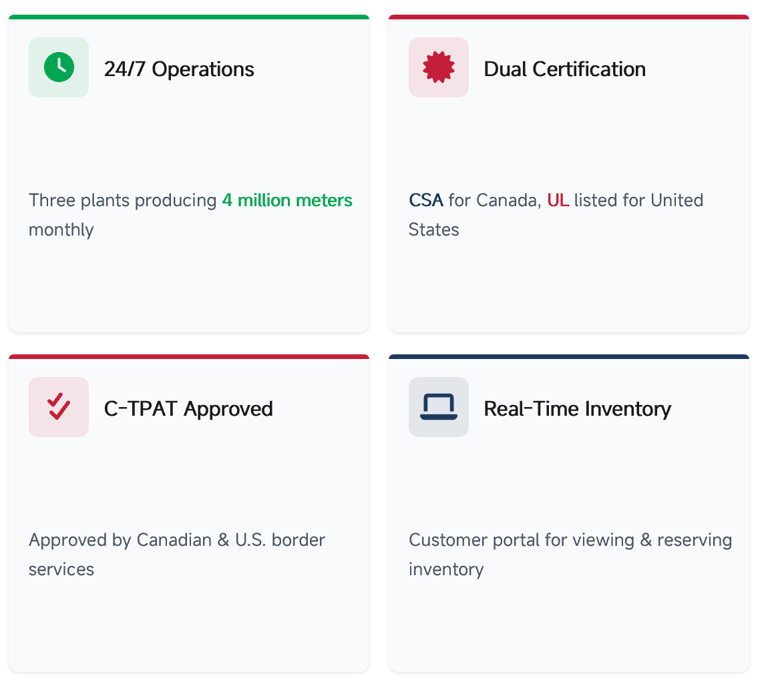 Northern Cables draws and strands its own conductors one of the few manufacturers in Canada with that capability ensuring consistent product quality and performance. Their mission emphasizes North American-sourced raw materials, robust production processes, and adherence to industry standards, including conflict-free material policies and RoHS compliance.