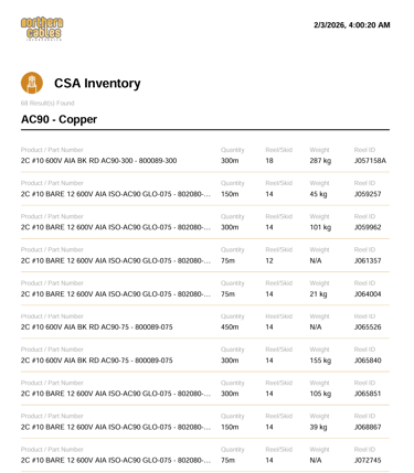 Northern Cables maintains a significant inventory of cable on hand (including millions of feet of wire in stock across various types and sizes), and supports customers with tools such as an online customer service portal for real-time inventory viewing and reservation.